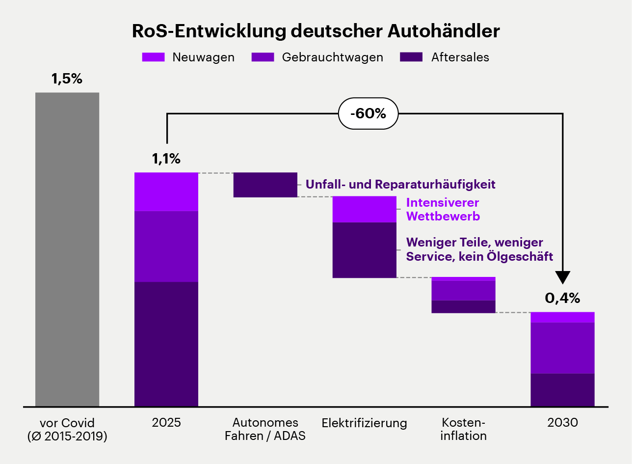 Dr. Maximilian Holtgrave: Der Handel ist aktuell die sichtbarste Schwachstelle – und zugleich ein strategischer Hebel für die Hersteller. Unsere Analysen zeigen, dass die Händlerprofitabilität in vielen Märkten bereits deutlich unter dem Niveau vor Covid liegt. Und wenn sich zentrale Einflussfaktoren – etwa sinkende Aftersales-Umsätze aufgrund des EV-Hochlaufs oder weiter steigende Energie-, Gebäude-und Personalkosten – fortsetzen, wird sich dieser Trend noch verschärfen.